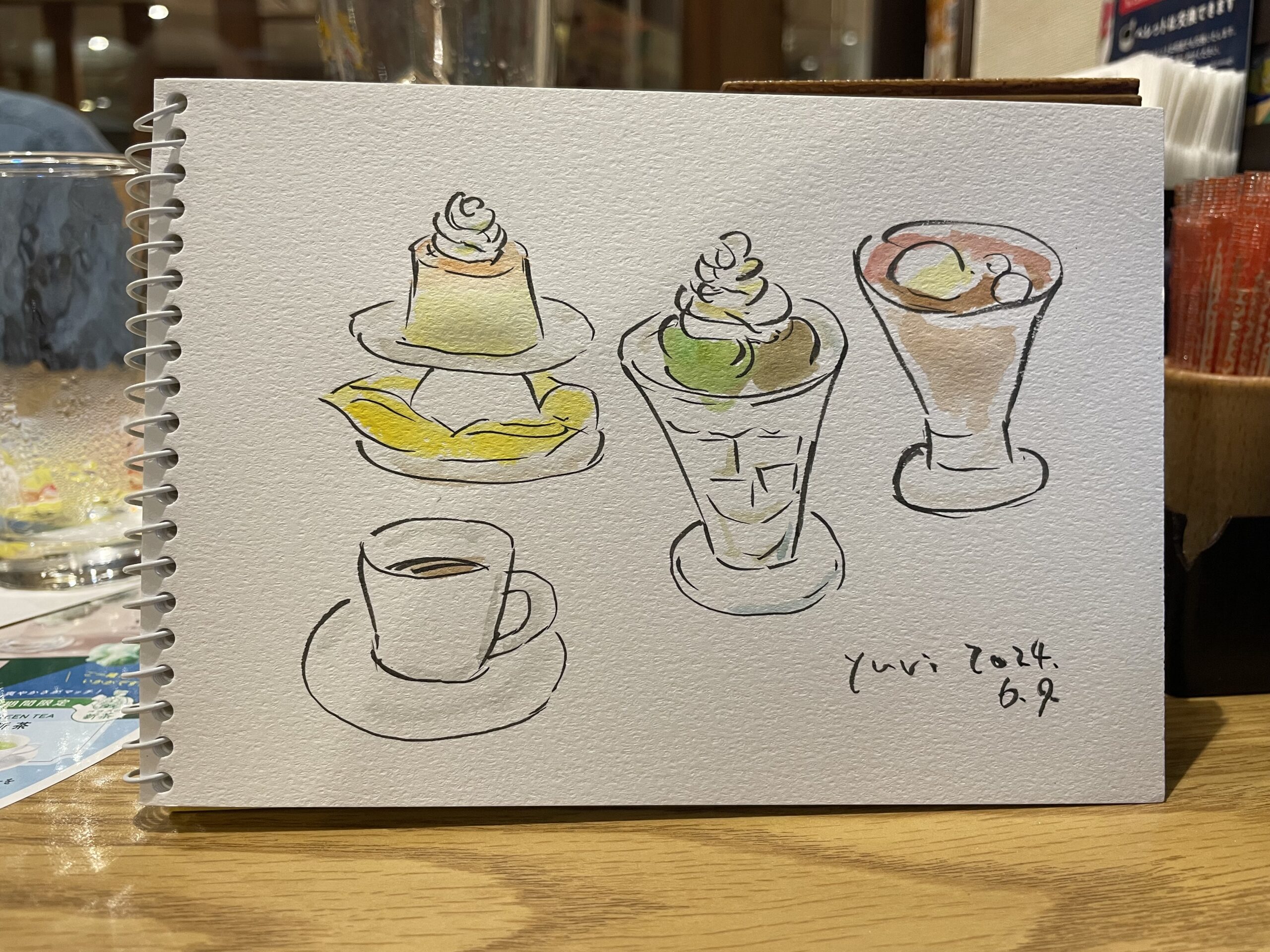 友人と食事の時や、散歩していて綺麗に咲いているお花を見た時、「いいな」と思った時は写真を撮りたくなるという人が多いのではないでしょうか。SNSにアップしたり、LINEで友人に送ったりと写真があるといいですよね。写真も良いのですが、私は水彩でスケッチイラストを描くことをオススメします。絵に描くと自分が関心のあるものにフォーカスして描くので、何に関心があるのか、よりはっきりします。下手でもいいんです。絵にすると自分の記憶にも強く残るので、あとで見返した時に「あの時、こんな会話をしたな」など、他の記憶も想起されたりします。